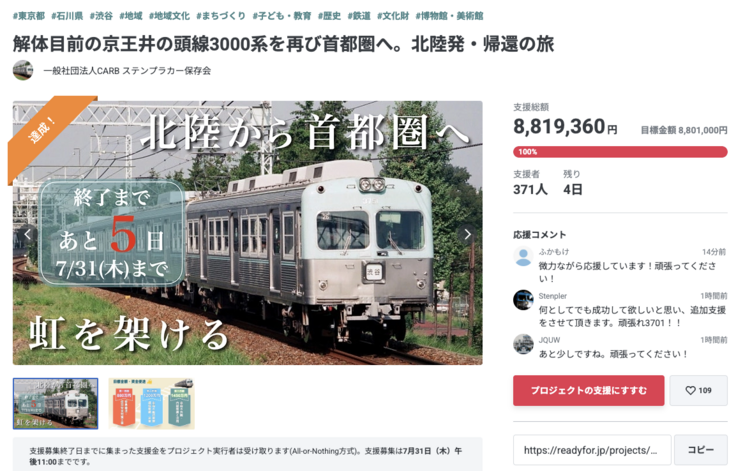 第一目標達成!ステンプラカーを後世に守る環境整備・引退電車活用の未来のため31日まで挑戦は続きます!