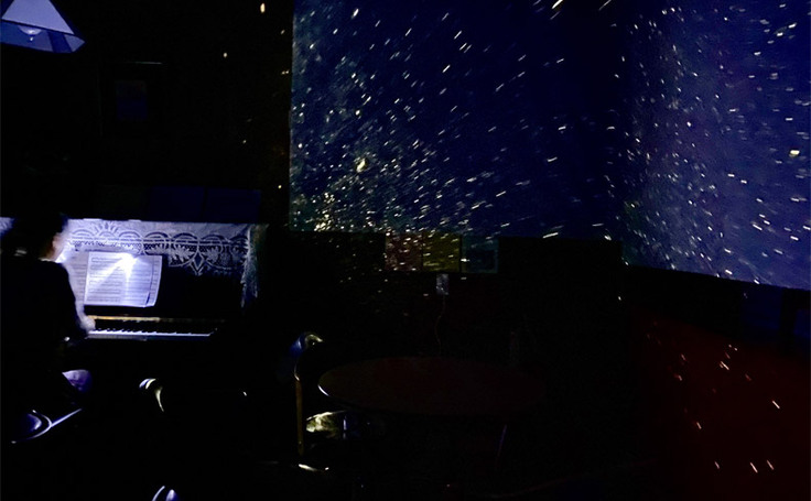 ピアノバーとのコラボ。まるで宇宙空間でピアノを弾いているような幻想的な空間でした。
