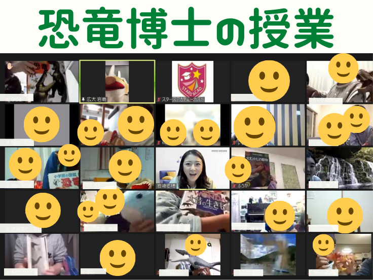 先生のクイズにチャットやリアクション機能、音声で答えてくれて大変盛り上がった授業でした。博物館にはまだ行ったことがないけれど「恐竜好き」のお友達が画面越しにこんなたくさんいるんだ!と嬉しく思ってくれた子もいました。
