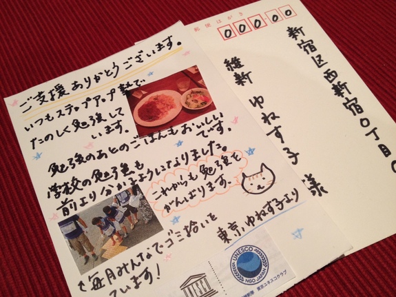 子どもたちからのお礼状は、年に2回を予定しています。学習の様子や寄付者への感謝の気持ちをおハガキでお届けします。