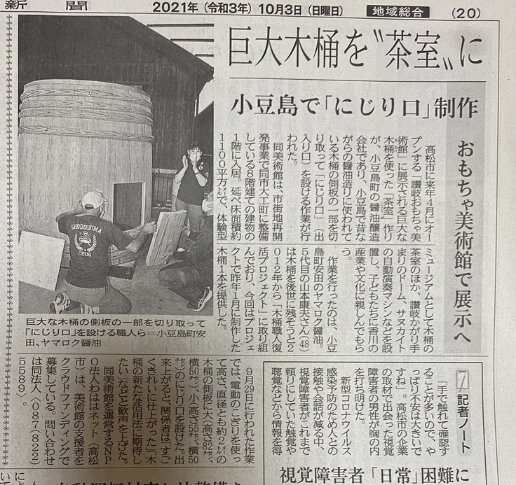 また今日の四国新聞さんにも【木桶の子ども茶室】が掲載されました!(^^)!