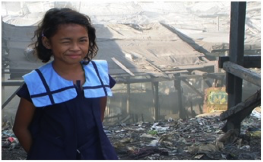 しかし、父親は稼ぎのためにマニラにもどり、彼女はスラムに住んで港で働いている。