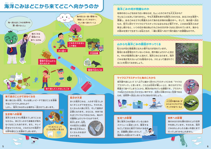子どもたちにとって読みやすく、海やごみ問題について興味と関心を持ってもらえるようにします。そのために通常授業で学ぶごみ問題や学校での取り組み、 特に小学4年生が社会科の授業で学習する生活ごみに関する内容(3Rなど) と掛け合わせて、現実生活との繋がりをイメージできるようにし、一人一人の行動に繋げてもらいます。期間としては2024年9月〜11月を予定しています。