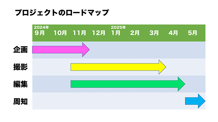 - 企業からの協賛金を募ります。自己資金の投入や、集まった資金の範囲内で制作できる内容にいたします。