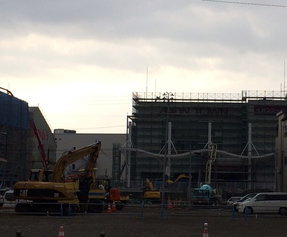 ▲2014年1月の釜石中心市街地の様子(建設中のイオンタウン)
