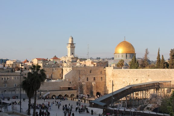 ▲エルサレム旧市街。ユダヤ「嘆きの壁」と、黄金のイスラム「岩のドーム」