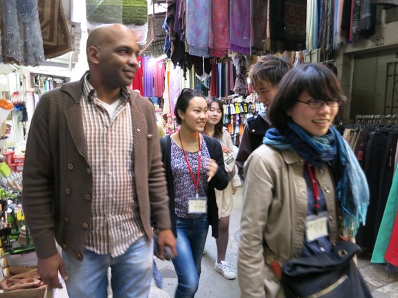 ▲スークを散策するスタディツアー日本人参加者と現地参加者