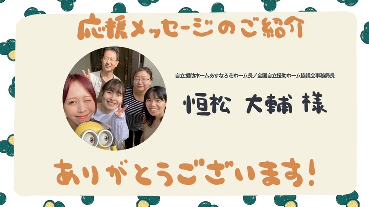全国自立援助ホーム協議会事務局長・あすなろ荘ホーム長の恒松大輔様より応援メッセージをいただきました!