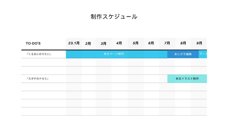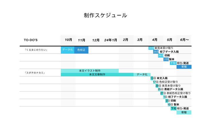 クラファンの終了と同時に絵本の発行部数が確定したことで、制作は2月から佳境に入っていました。特に4,5月には終盤に差し掛かるため、工程が非常に細かくなります。表も見づらくなってしまい申し訳ありません。