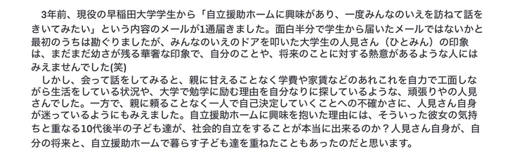 (出典:自立援助ホームみんなのいえ・Buzz Feed Japan)