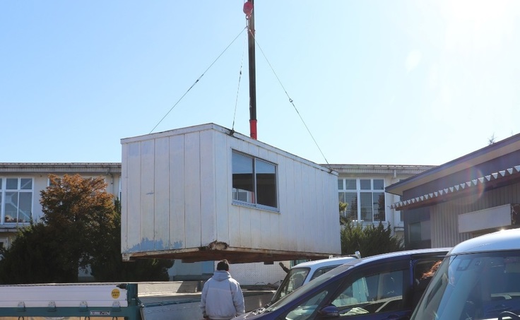 建設会社様のご好意により、一時荷物待機小屋を学校のご理解ご協力の下学校の敷地内=学童のすぐ近くに設置することになりました。