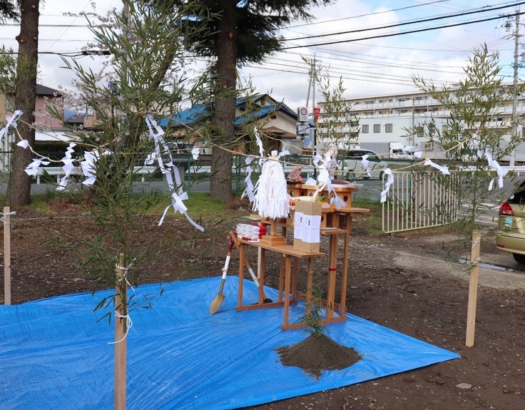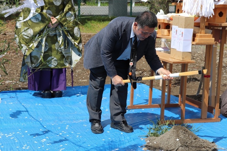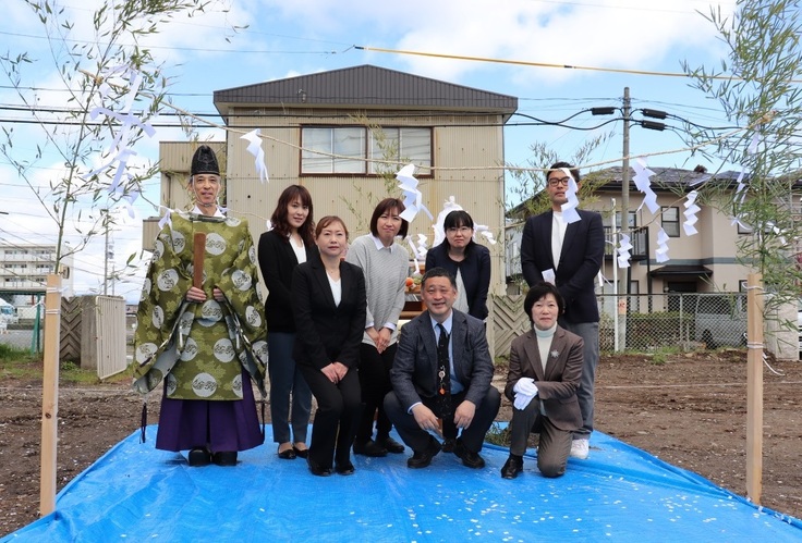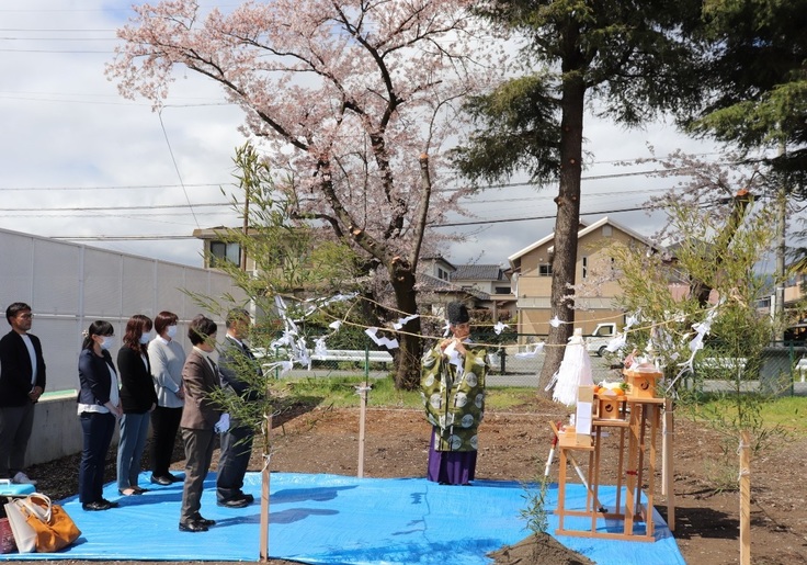 春風に桜の花びらが舞い散る中、地鎮祭を行いました!