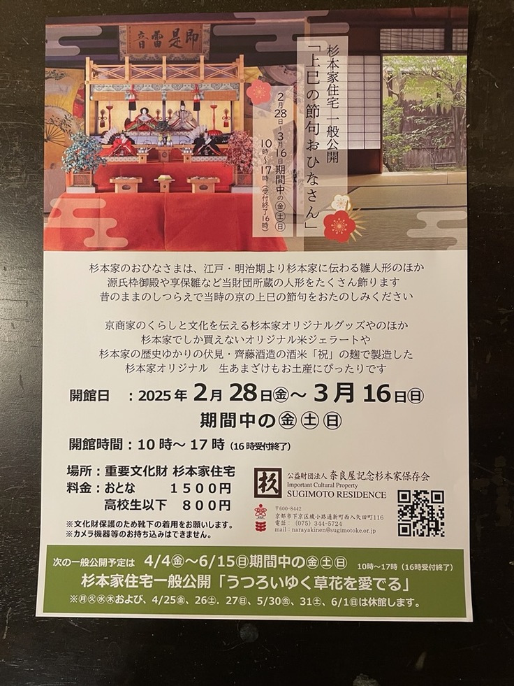 是非、春のひとときを杉本家住宅のおひなさんと共にお過ごしくださいませ。スタッフ一同お待ち申し上げております。