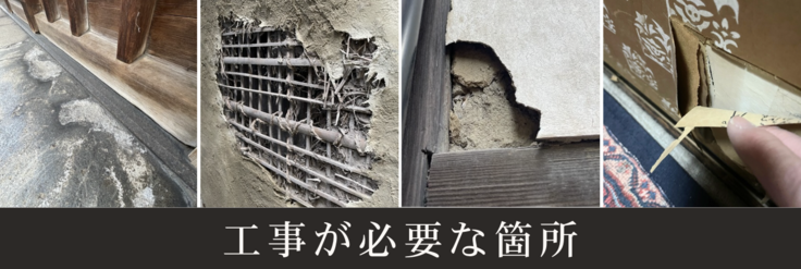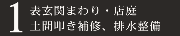 店舗部・居室部間のミセニワの排水設備(土間叩きを含む)の整備、高塀壁の修理、主屋内部の壁、襖の修理等