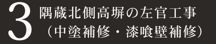 ②隅蔵北側高塀の左官工事( 中塗 補修 、 漆喰壁補修 )