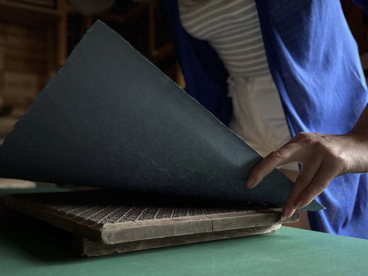 京都で唐紙屋として400年の歴史を継承する唐長様よりご提供いただいた、便箋料紙です。今回のクラウドファンディングのために、特別に誂えました。