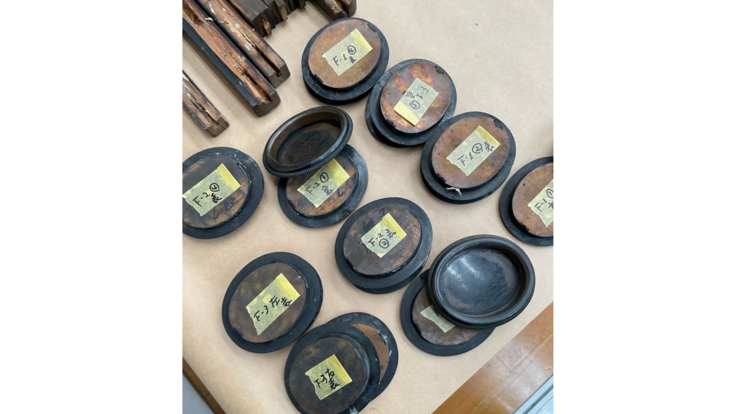 襖の外枠は折れたり欠けたり、黒塗がはげたり、損傷が激しい部分があり、原状を守りながら繊細な作業で修理されます。襖1枚に、さまざまな部材が組み合わされていることを目の当たりにし、細分化されている伝統技術の奥深さ、継承すべきことの多さを実感しています。
