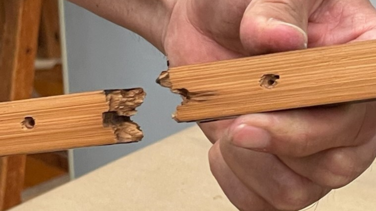 日々、来客を迎え入れる空間であるがゆえに、経年の劣化、進む傷みの修繕に手をつけにくかった箇所といえます。雨水の浸み込みによる腐食がいたるところにあり、木造住宅にとって大敵である柱の根元の傷みが年々進んでおります。そうした根腐れと同時に、湿気た木部には白蟻がつきやすく、悩みは絶えません。