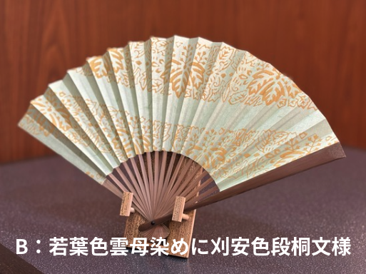 京都で唐紙屋として400年の歴史を継承する唐長様よりご提供いただいた扇子です。今回のクラウドファンディングのために、特別に誂えました。