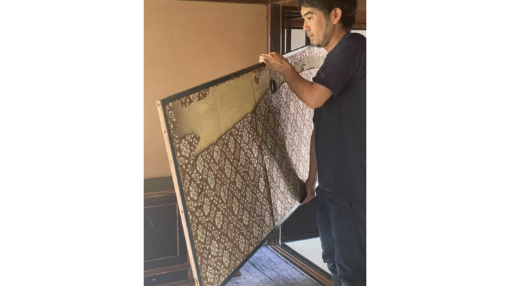 70年余り貼り替えることなくきた襖紙は茶褐色になり、触れるとほろほろと崩れてしまうほどで、時が紡ぐ風情を楽しむとは言い難い状態になっていました。