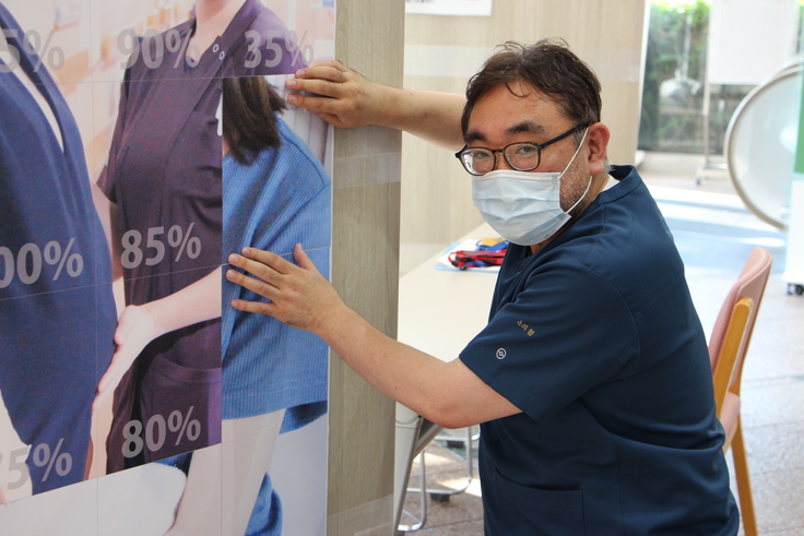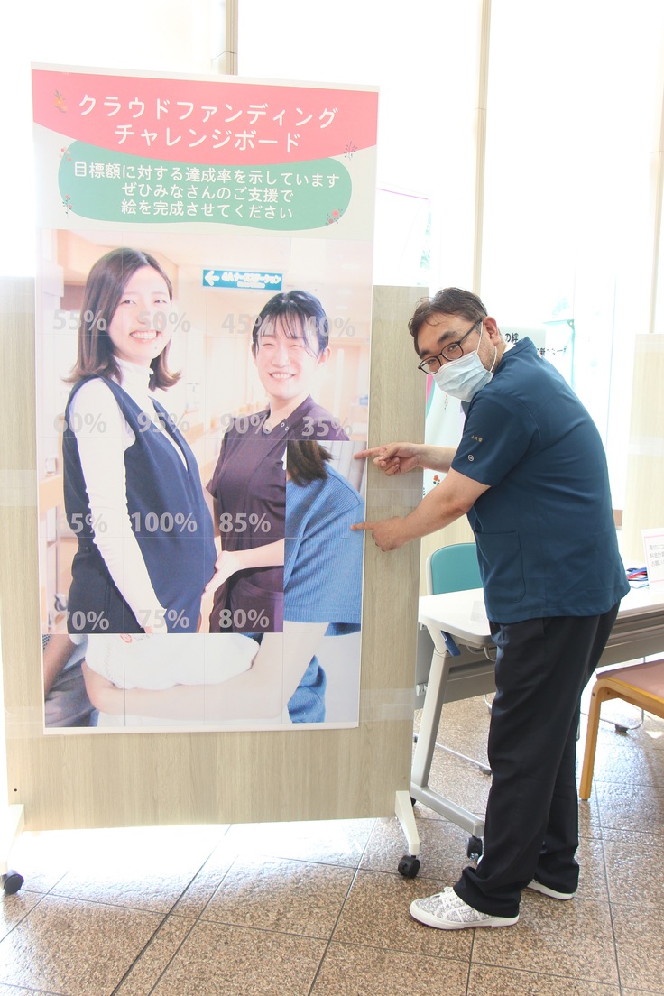 プロジェクトメンバー小川小児科新生児科科長が6枚目のパネルをチャレンジボードに貼り付けました。