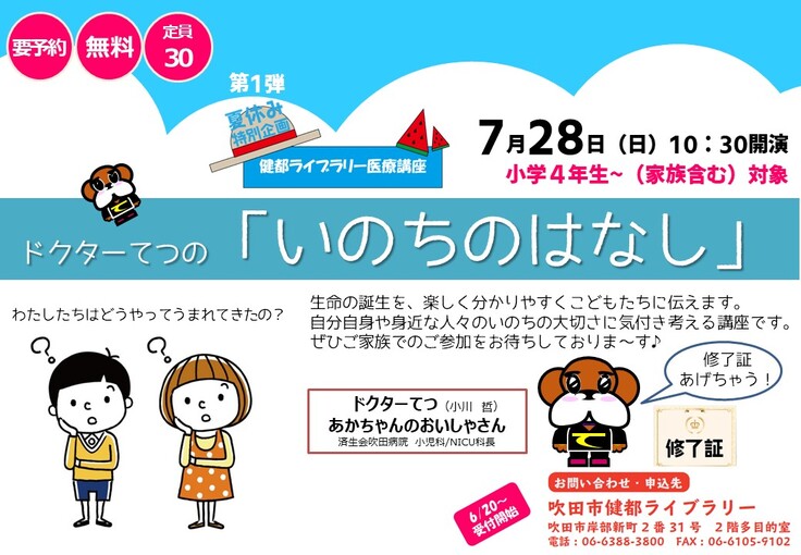 7/28(日) わたしたちはどうやってうまれてきたの? 命の大切さに気づき考える講座です
