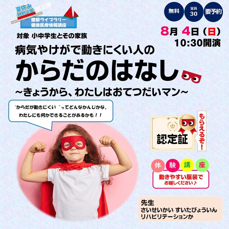 8/4(日) 病気やけがなどで動きにくいってどんな感じかな? なにかお手伝いができるかも!