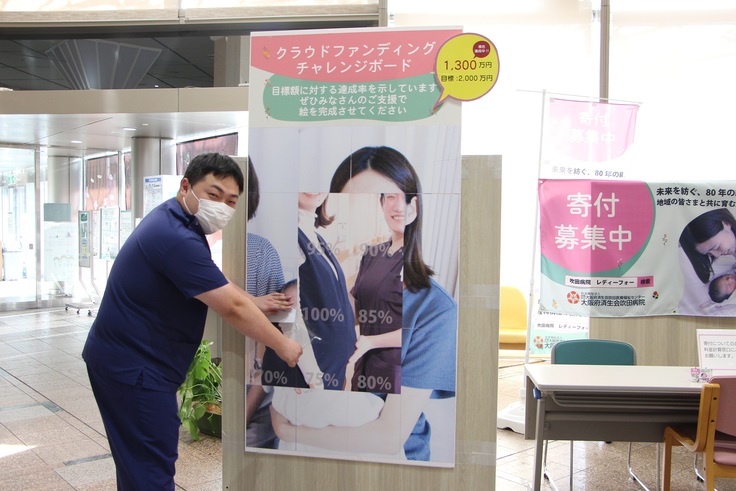 今回は、消化器内科の医師に13枚目のパネルをチャレンジボードに貼り付けてもらいました。