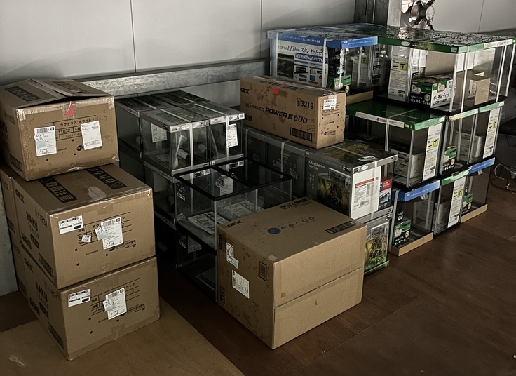 60cm以下の水槽は納品済みで、1m超えの水槽は3月6日にかつみキャンパスに届く予定です。