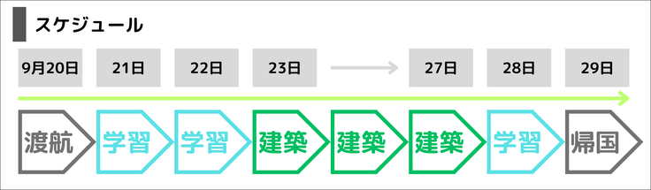 ※建築活動の行えない土曜日、日曜日は、現地の環境に慣れることや、文化交流を目的とした文化学習活動を行います。