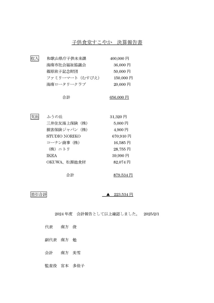 2024年度は先日亡くなられた、故岸本和歌山県知事の思いをいただき、県の補助金60%その他寄付金で子供食堂を運営してきましたが、これだけの改装費と運転資金を補助金に頼ることは出来ないので、クラウドファンディングに挑戦しています。