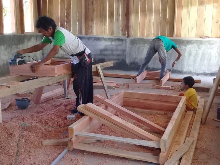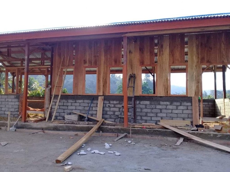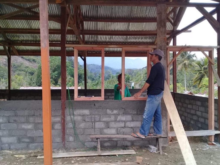 隣り合わせに建設されている校舎ですが、外壁や窓枠の取り付けも、インドネシアの伝統的な方法で、大工さんたちが手作業で行いました。