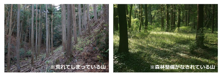 現在の山の環境は非常に悪化しています。建築材向けに植林された針葉樹が手入れも伐採もされずに放置されていること、また従来は樹木を利用することで手入れされてきた里山も、現在は放置されてしまっていることが原因に挙げられます。こうして荒れた山は日も風も通らない状態であり、木や下草の生育が妨げられて、雨水が表層を流れ土砂災害を引き起こす危険性があります。