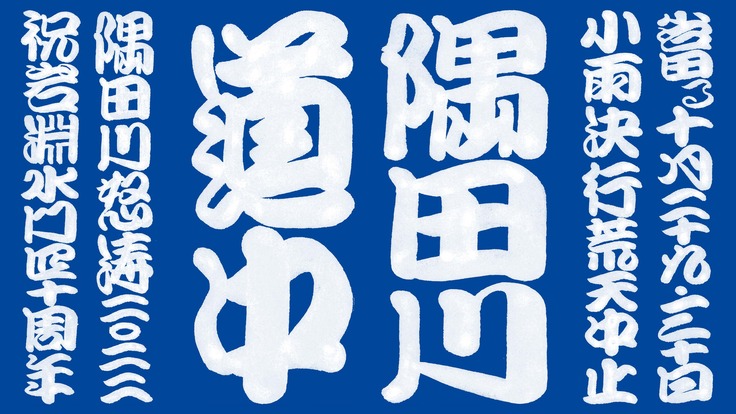 「隅田川道中」メインビジュアルを大きく染めた手ぬぐいを掲げて、現地で応援しよう!