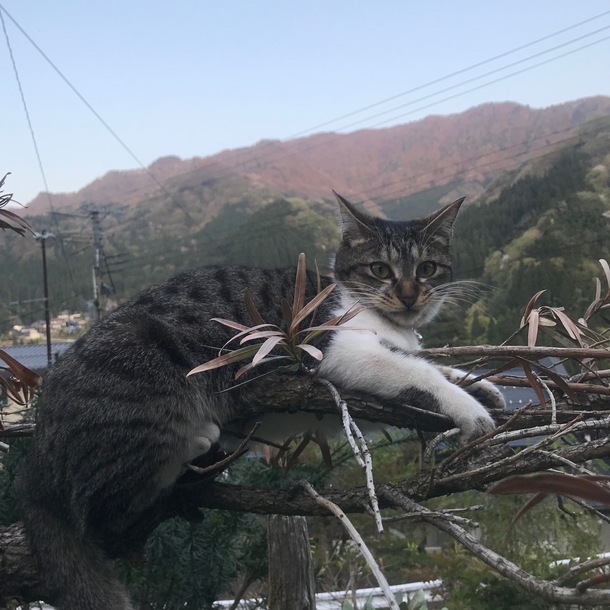 あ~暇だな~ってときは庭の木にのぼるといいですよ。近所の小学生がきたときは、ここでかくれんぼできますしね。