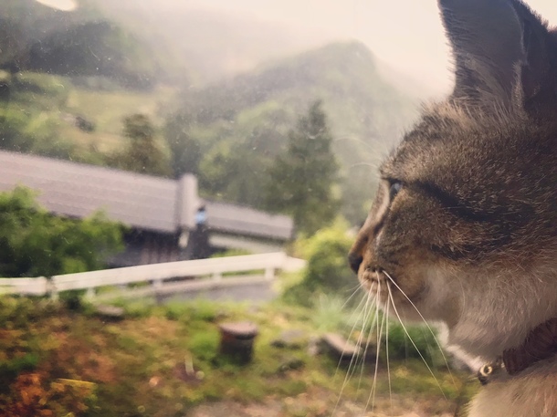 それからね、お家の中の縁側もおすすめなんです。景色がいいって思いますね。雨の日はお外にでると濡れちゃうのでもっぱらここからお外を眺めてます。