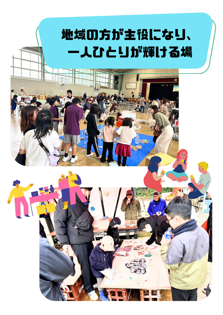 だからこそ子どもから大人まで、地域の方々や県内外の方々、みんなが集い遊びつながれる「縁-enn-」の場を造りたいと強く感じました。そして、この「縁-enn-」でのイベントは、町に賑わいを生み、地域の人々が気軽に交流できる空間、人と人とのつながりを育み心がほどけるような時間を過ごせる場所にしたいです。