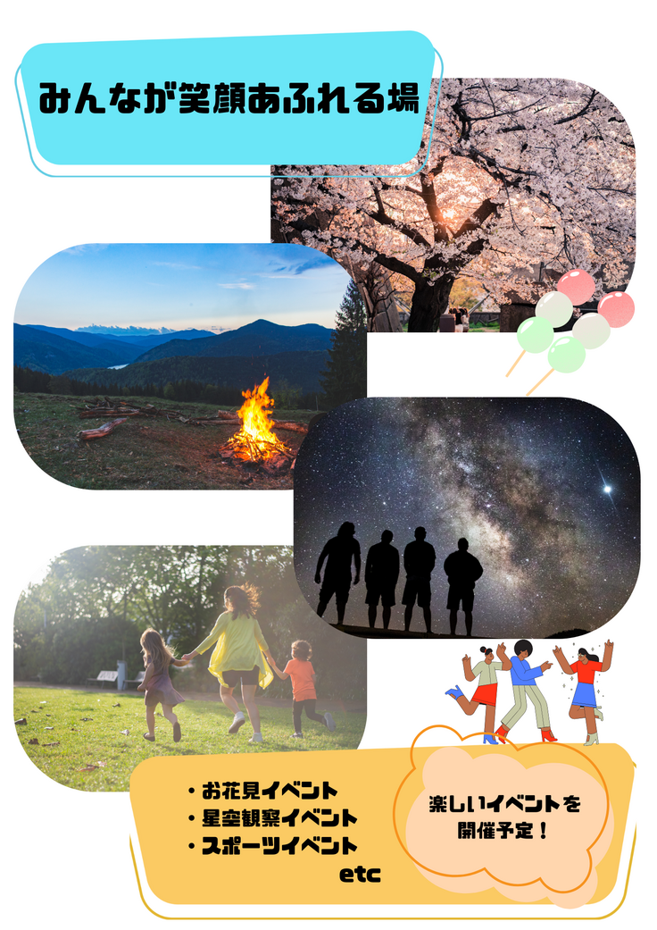 「縁-enn-」を通じて地元の方々が主役となるイベントを行ったり、地元の企業の方とのイベントを開催し、農作物の収穫を楽しんだり、夜には星空観察会、地域の方々と交流ワークショップを開催していきます。