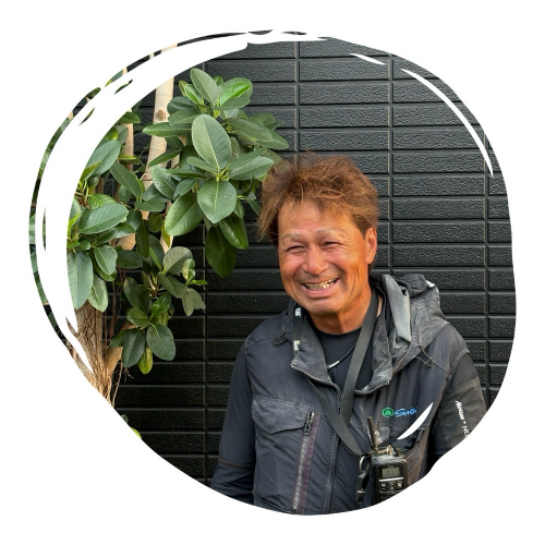 益田市から離れることなく家業の造園の仕事に付き、先代の社長にずい分鍛えられ一つひとつ技術を身に付け、職人技を習得し成長してきました。そして、先代社長から会社を受け継ぎ、10年ほど前から土木工事にも力を入れ今に至っております。