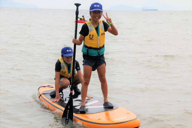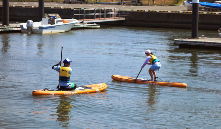 カヌーとは違い、水面に落ちてもその場で再乗艇できるため、救助艇に引き上げたり、艇を陸まで運んだりする必要はありません。カヌーも水面を近くに感じることができる種目ですが、SUPは更に水を近く感じることができるため、マリンスポーツ体験会でもとても人気がある種目です。