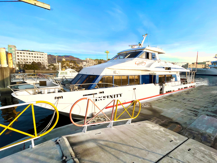 いつも船の運行でお世話になっているのは、株式会社 恭兵船舶さんで、「INFINITY」(定員68名、49トン)という船を使っています。