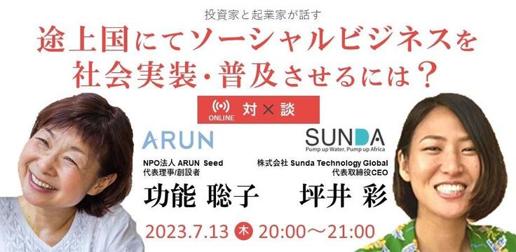 クラファン最終日の7月13日、社会的投資のパイオニアであるARUNさんと、途上国の社会問題を解決するアイディアを如何に社会実装して普及させるか、そのポイントや課題について議論するイベントを開催することになりましたので、お知らせします。