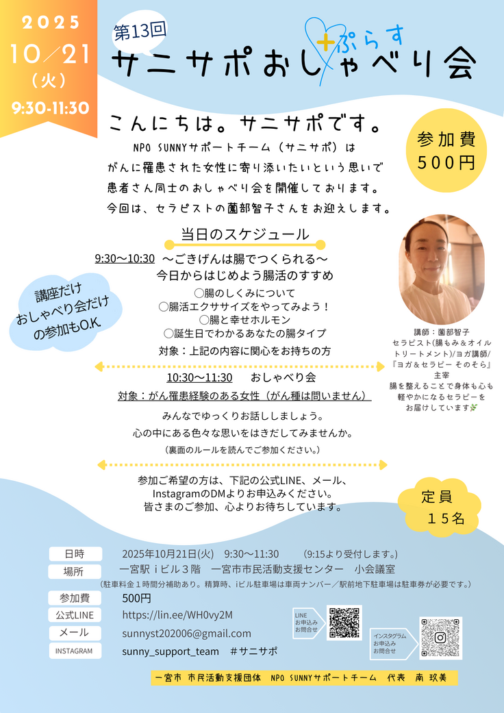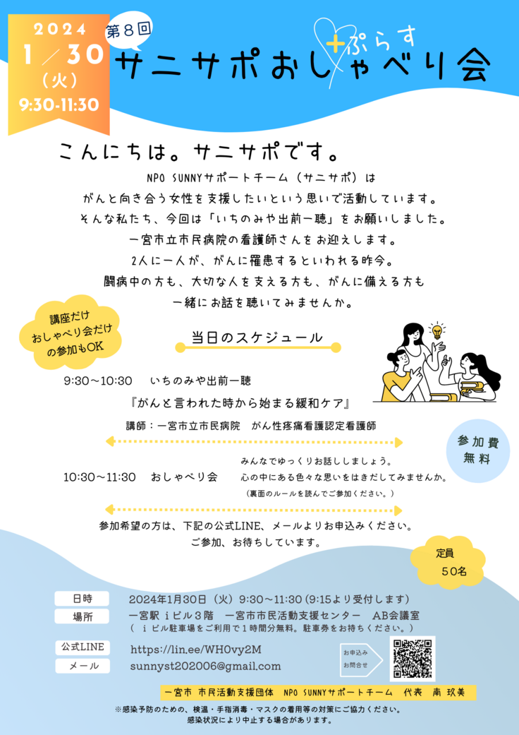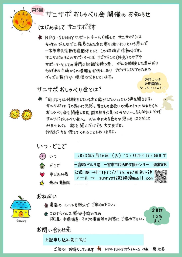 ▼講師の方々をお招きするようになり、「サニサポおしゃべり会+ぷらす」になってからのチラシの様子