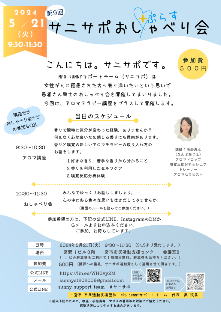 私たち NPO SUNNYサポートチーム(サニサポ) は、愛知県一宮市を拠点に「病気で髪がぬける女性やそのご家族に寄り添いたい」という想いから2020年に立ち上がりました。