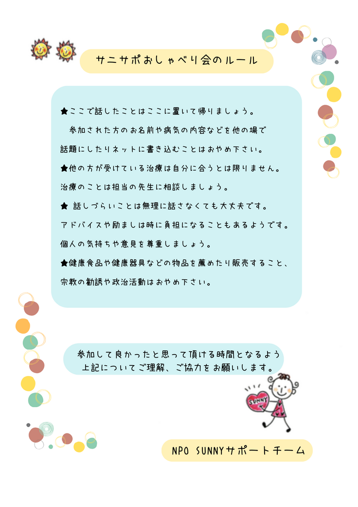 ・患者さんや経験者同士がつながる「おしゃべり会」の開催