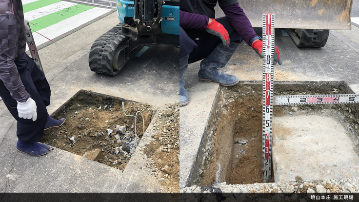 4月末に車止め設置を予定しておりましたが、焼山本庄の工事中に想定外の埋設物が確認されました。埋設構造物の扱いを確認するため、現在は作業が一時中断しております。ご報告が遅くなり、申し訳ございません。