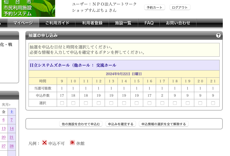 ちょうど現在、2024年9月の利用のための抽選期間となっていました。