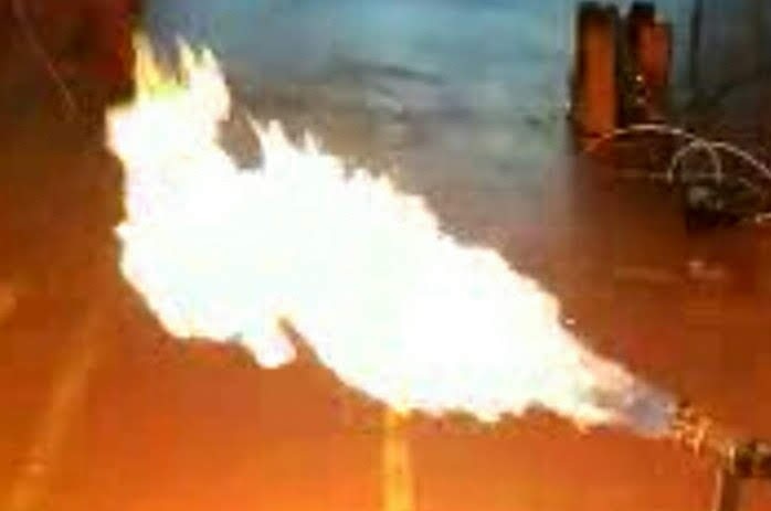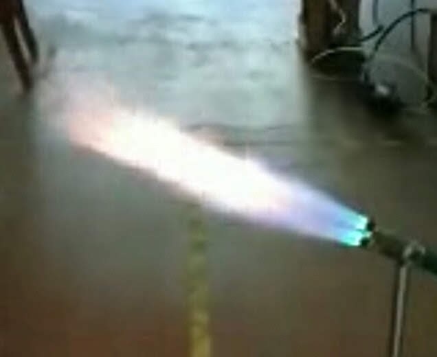 LPガスに高濃度水素イオン®を混合前の炎の様子。