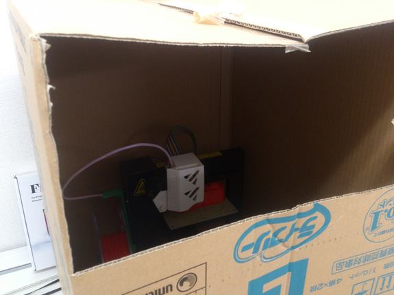 室温20度くらいで段ボールをかぶせると、それでも24度くらいまでは上がっていたので、このUP!Plus日本公式サイトで購入した専用カバーへの期待、大です!これで、3D出力途中のモデルの「反り」やズレによる出力失敗が激減する!と確信しています。