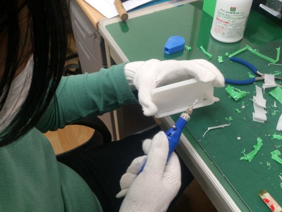 サンサン就労B型3Dチームは・・・2台の3DプリンターUP!Plusがフル稼働!3Dデータの作成、修正、出力。そして、サポートはがしがサンサン始まって以来の多忙を極めています・・。高松養護さんの不便改善アイデアの試作品やOKが出たグッズの高細密・最終版の出力、そして、READYFOR支援者の皆様への引換券に伴うプレゼント3Dモデルへの名入れ出力が重なり、嬉しい悲鳴状態です。